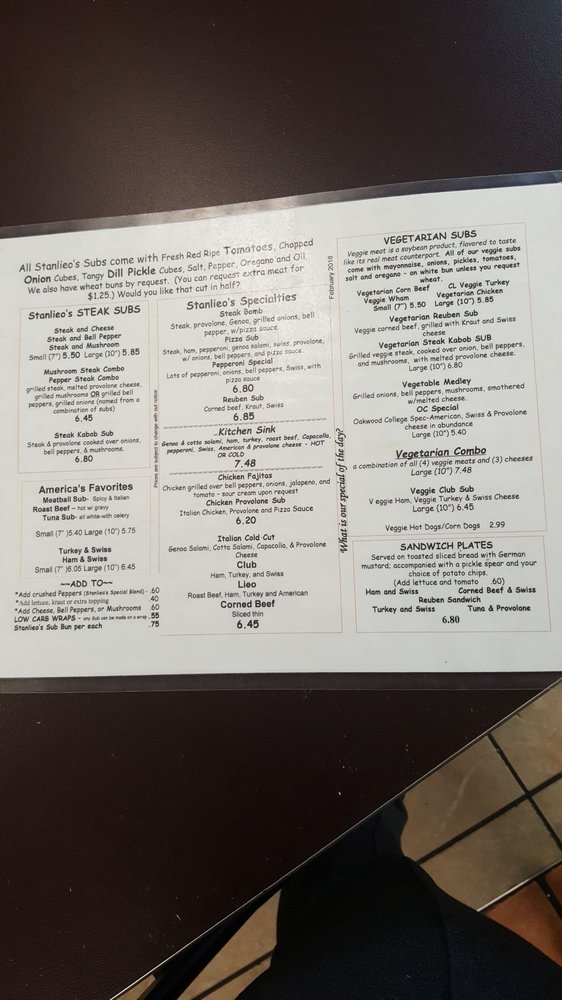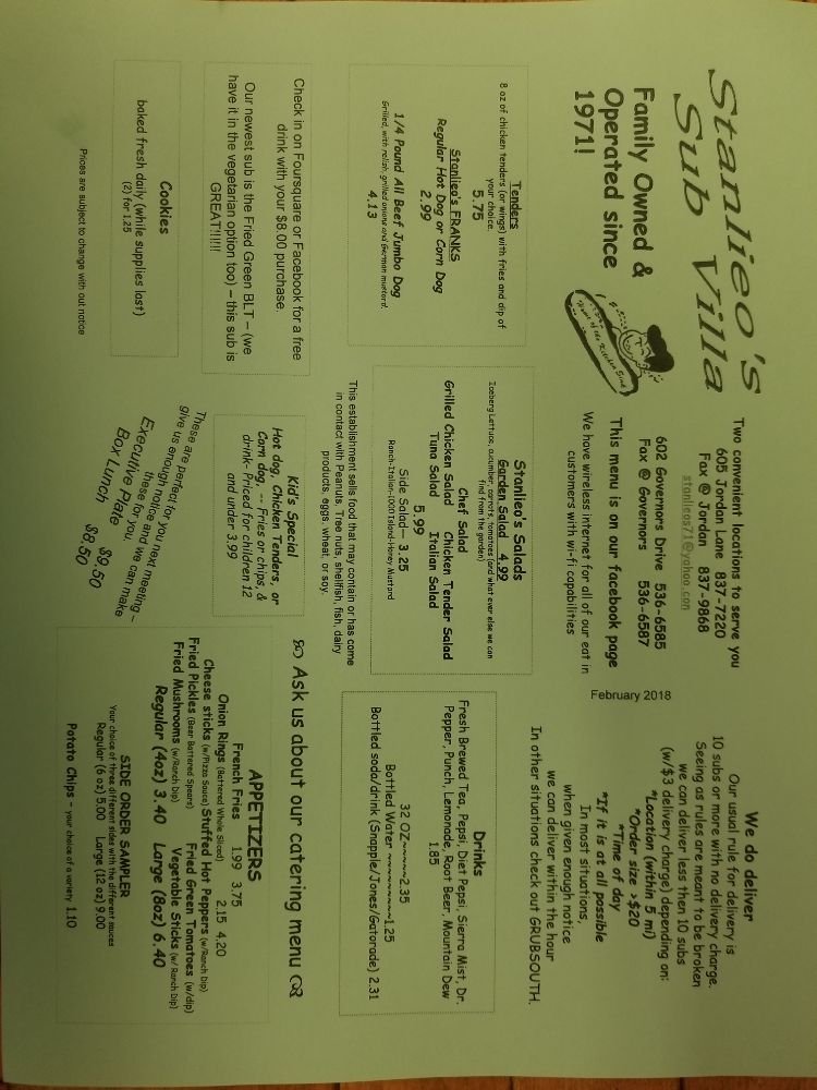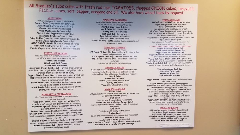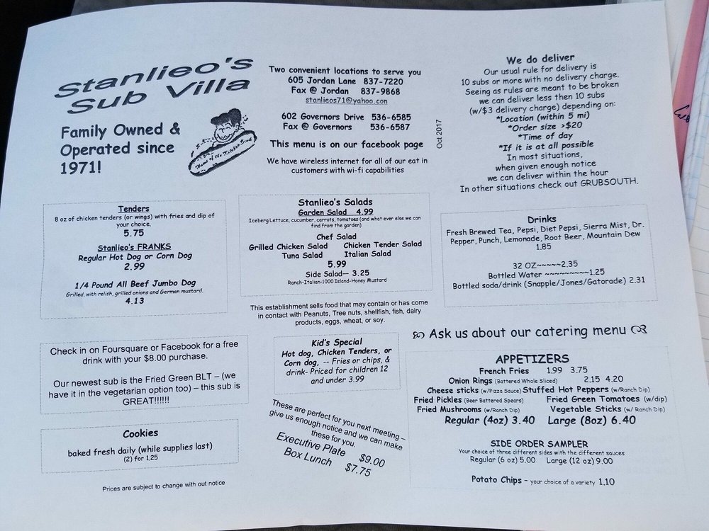 Welcome to Stanlieo's Sub Villa, a beloved Huntsville gem located at 605 Jordan Ln NW. Specializing in mouthwatering subs and pizzas, this eatery has won the hearts of locals for nearly three decades. The menu features a variety of enticing steak subs, from the classic Steak and Cheese to the hearty Kitchen Sink Sub, which boasts an impressive combination of meats and cheeses. Vegetarian options are also aplenty, with offerings like the Vegetarian Wham Sub and the flavorful Vegetarian Steak Kabob Sub.